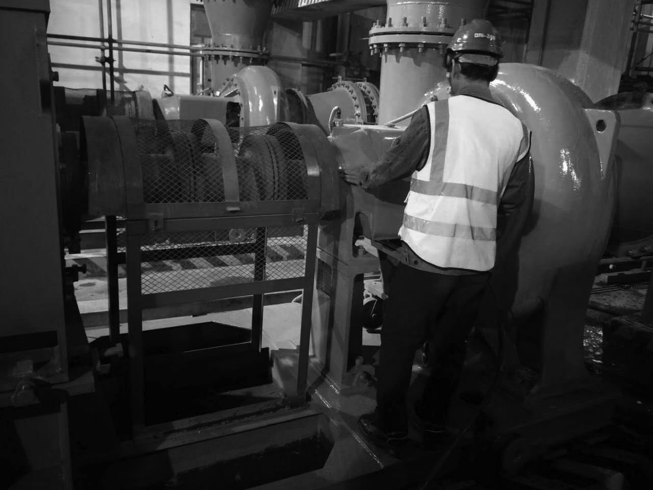 圖(2)鍋爐專工正在檢測脫硫泵的運行情況