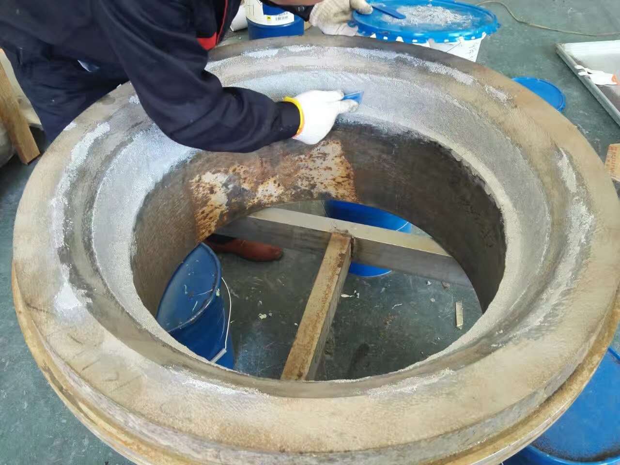 高分子陶瓷復合材料修補劑施工方便,對施工環境要求低,蝸殼、護板、吸入蓋、管道內襯等等無需做動平衡檢測的工件可以現場施工,降低修復工件運輸成本及修復時間。