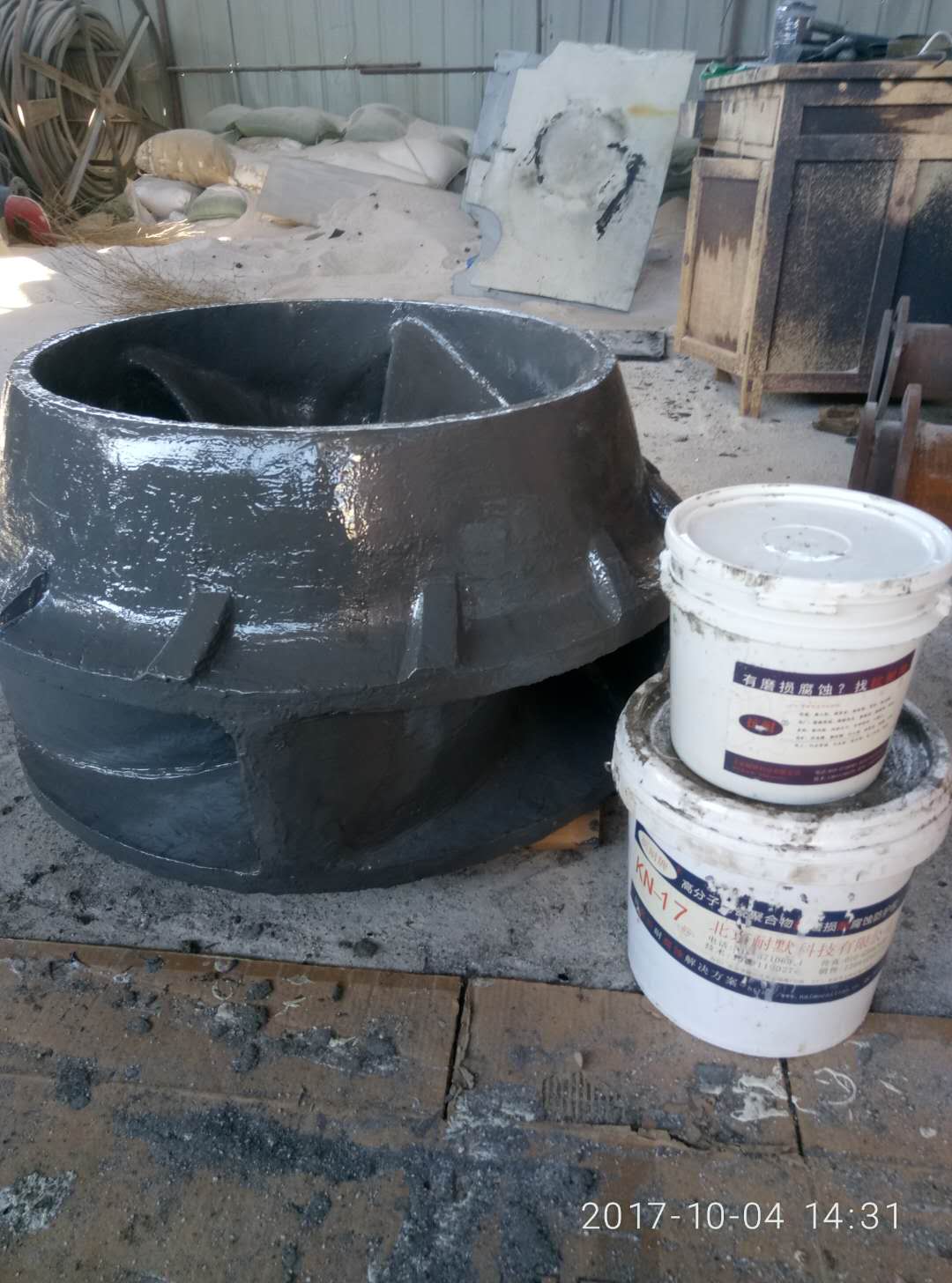 脫硫泵葉輪一般是雙相鋼材質,使用壽命約1年左右,北京耐默公司可以將磨損的脫硫泵葉輪修復到新泵尺寸,采用的KN17高分子陶瓷聚合物將已經磨損的葉輪修復。
