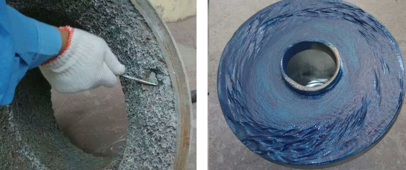 圖(3)修復后渣漿泵葉輪使用一個月后檢查磨損情況,基本無磨損